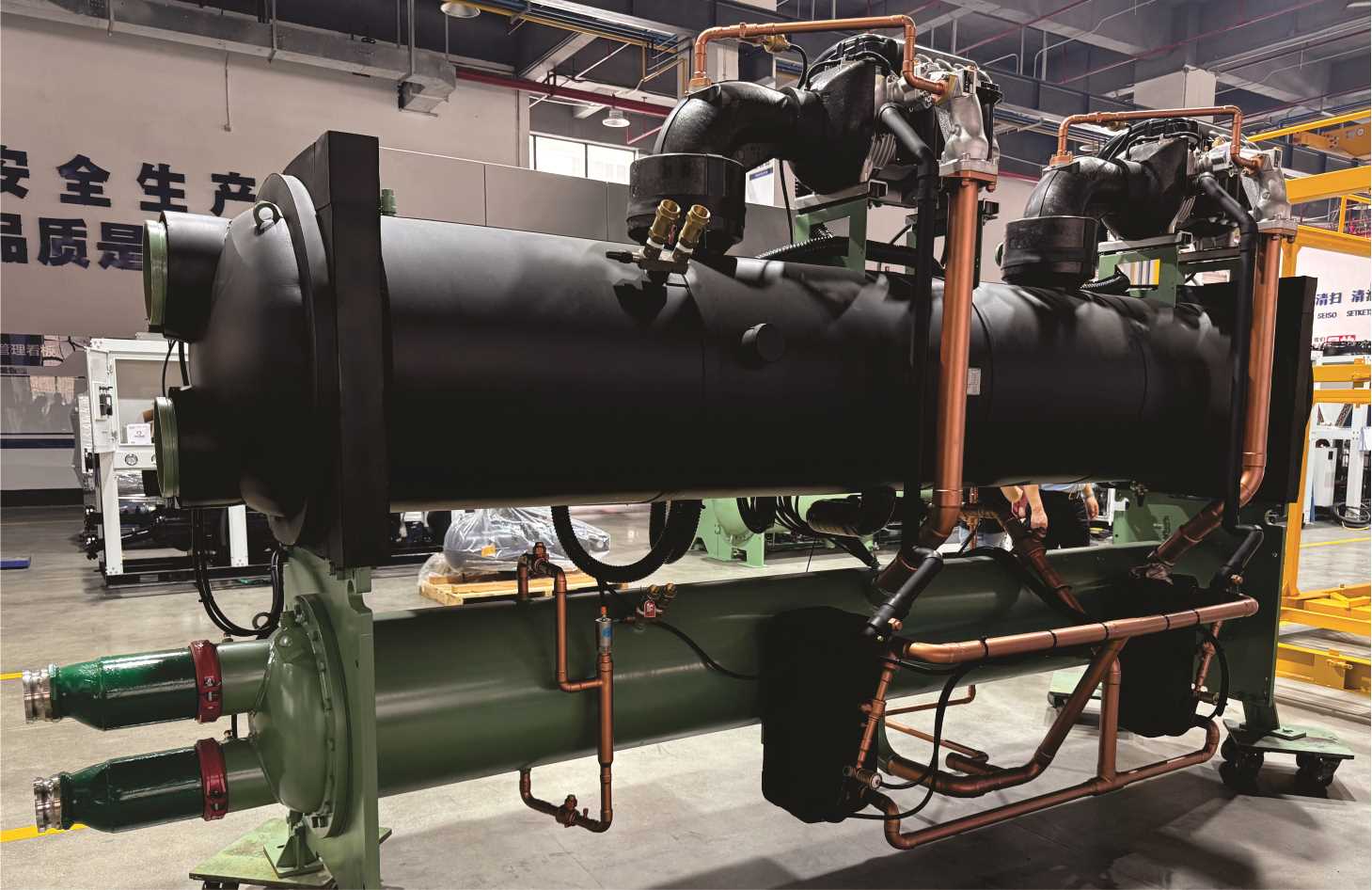 Water-cooled Type chillers employ a water-cooled condenser which works in conjunction with a cooling tower. These units have the highest performance output.